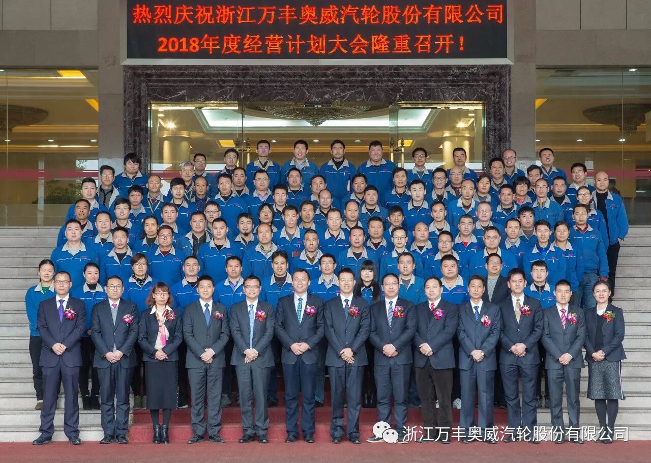 2018年1月4日,浙江万丰奥威汽轮股份有限公司2018年度经营计划大会在万丰上市园隆重召开。大会全面部署了公司2018年度作战纲领,明确了新一年公司经营指导思想和经营目标。控股集团董事、管理中心余登峰总监;副总裁、财务总监陈韩霞女士等多位领导及公司近300名干部精英参加了大会。